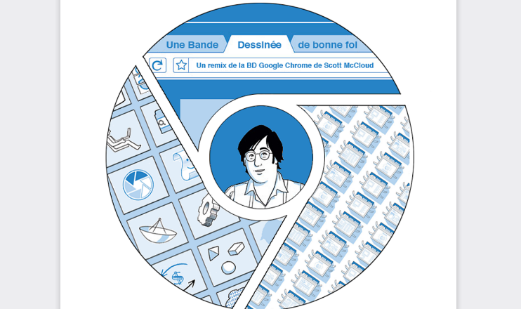 Lawrence Lessig a expliqué un jour que, tout comme les essais critiques commentent les textes qu’ils citent, les œuvres de remixage commentent le matériel qu’elles utilisent. Dans mon cas, la BD originale de Chrome expliquait prétendument le fonctionnement de Chrome, et j’ai transformé ce matériel en une BD qui rend compte de son véritable fonctionnement.