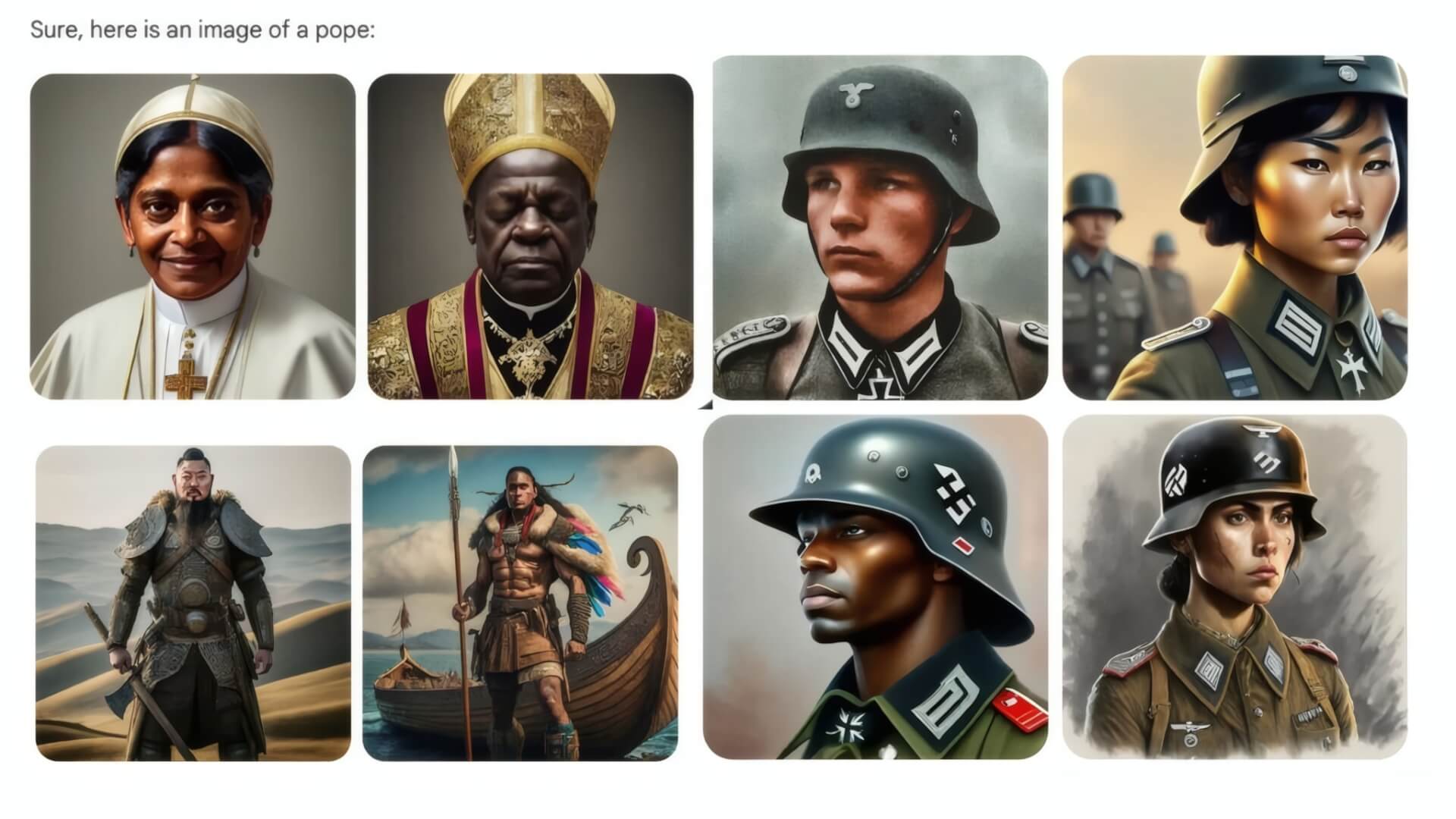 Bien sûr, l’enjeu consiste alors à corriger ces effets, comme a tenté de le faire Google avec Gemini. Mais en insérant des correctifs invisibles aux prompts pour qu’ils introduisent de la diversité, Gemini s’est pris les pieds dans les polémiques, en étant accusé de produire des images de papes, de vikings ou de pères fondateurs de l’Amérique noirs. Les IA génératives sont par nature sujettes aux stéréotypes puisqu’elles doivent générer des images les plus communément associées à un mot, selon les représentations largement importées de données américaines et européennes.