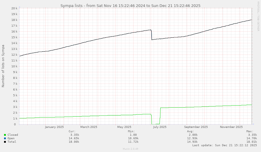 💪 Avec près de 70 000 listes actives en 2025, Framalistes et Framagroupes sont certainement les plus gros serveurs de listes de discussions (hors géants du Web) qui existent. Nous décomptons par exemple 2 000 listes publiques sur Universalistes ou 16 316 sur RiseUp.