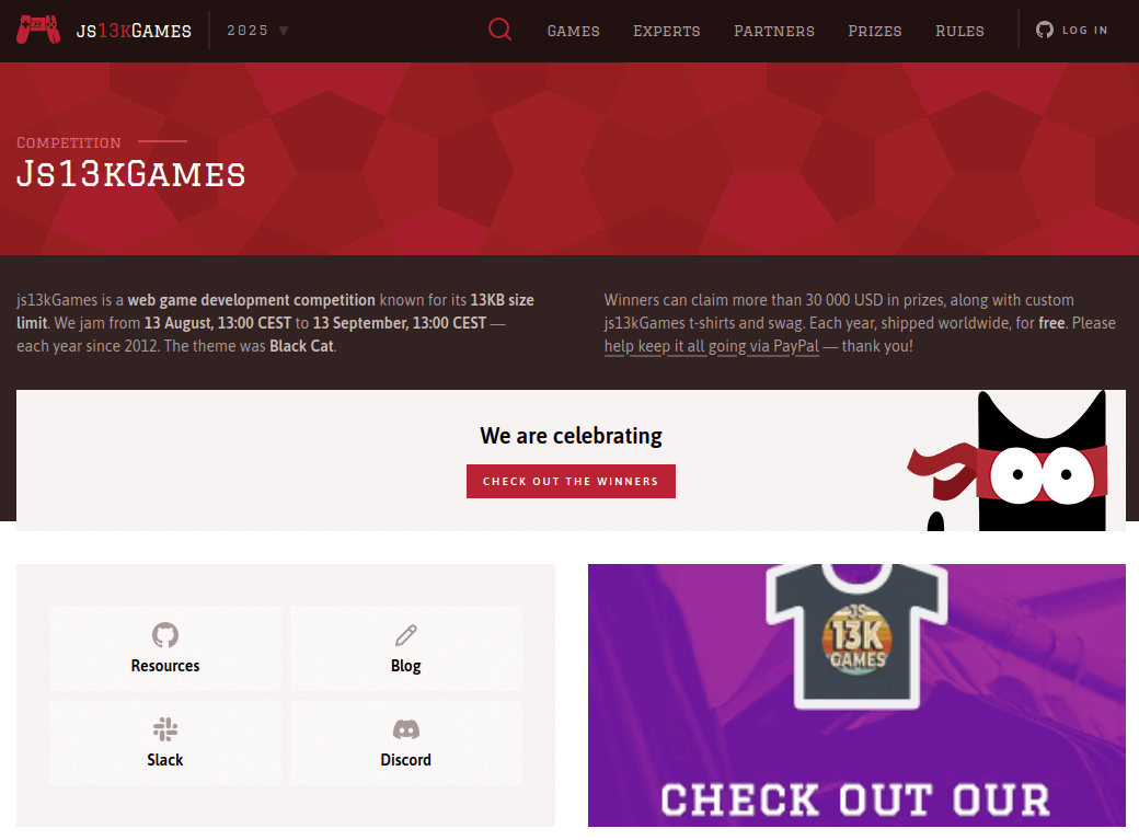 Il s’agit d’une compétition annuelle de création de jeux dont le poids total ne peut pas excéder 13 Ko. Chaque année un nouveau thème ajoute une complexité à ce défi de sobriété. L’année dernière, le chat noir était à l’honneur. Catculus, arrivé en 6e position et Wash the cat, 18e, ont été conçus pour ce concours. N’hésitez pas à vous perdre dans les archives des années précédentes pour retrouver qui parmi nos nouveaux jeux est issu de ce site.