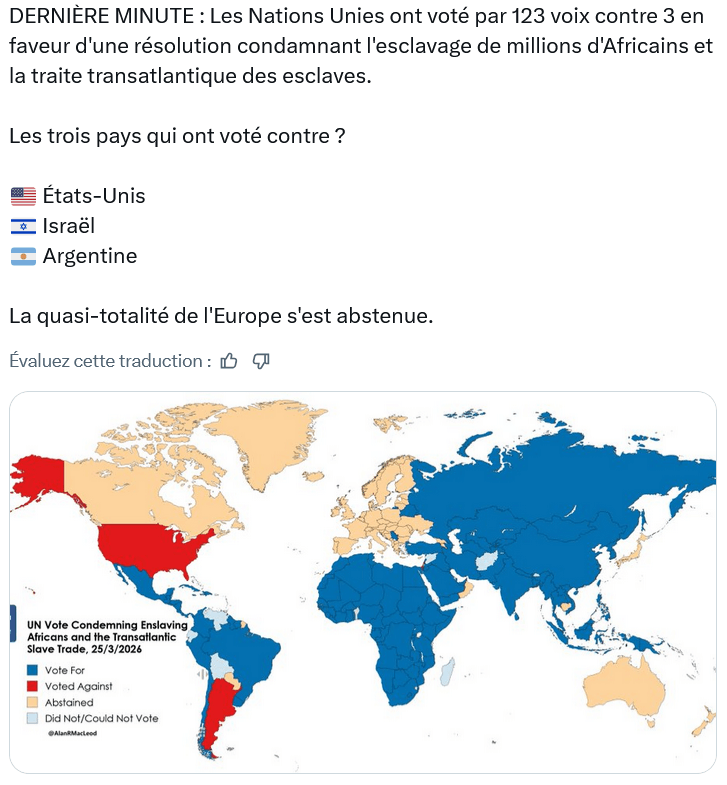 Voir aussi L’esclavage et la traite négrière : l’ONU les déclare « plus graves crimes contre l’humanité » (humanite.fr)